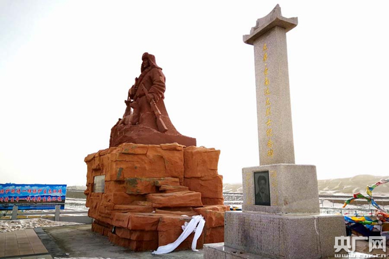 可可西里自然保護(hù)區(qū)的杰桑·索南達(dá)杰烈士紀(jì)念碑和雕像(央廣網(wǎng)記者 張雷 攝)