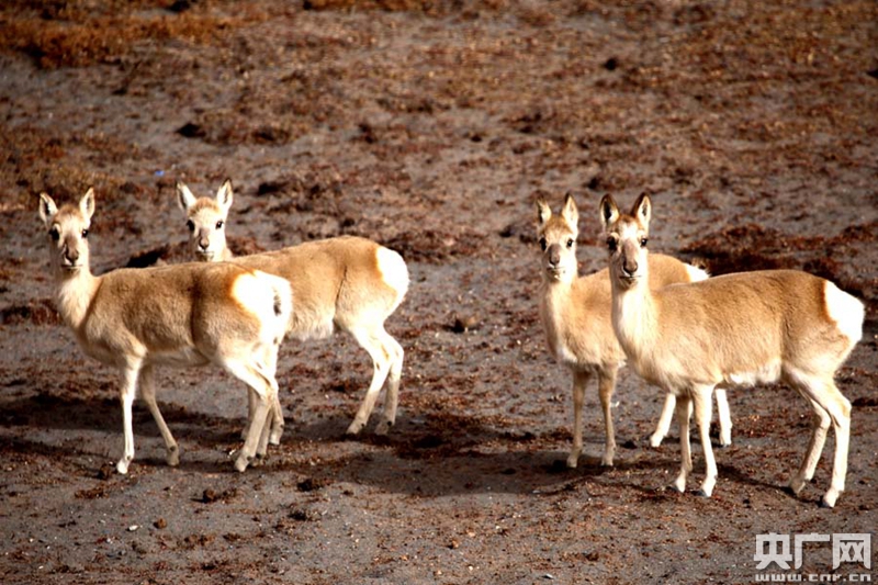 穿越可可西里自然保護(hù)區(qū)的公路旁,藏原羚面對(duì)記者的鏡頭毫無(wú)懼色(央廣網(wǎng)記者 張雷 攝)