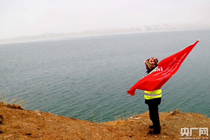 在黃河源頭鄂陵湖畔巡視的牧民生態(tài)管護(hù)員(央廣網(wǎng)記者 張雷 攝)