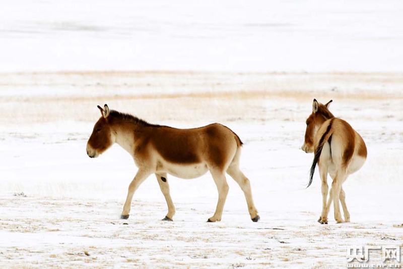 藏野驢在黃河源頭鄂陵湖畔悠閑漫步(央廣網(wǎng)記者 張雷 攝)