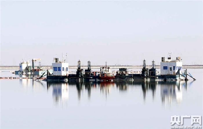 鹽田上的水采船(央廣網(wǎng)記者 張雷 攝)