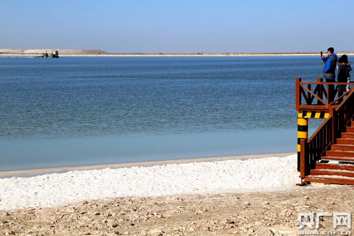 鹽田邊圍著一圈白色的結(jié)晶項(xiàng)圈(央廣網(wǎng)記者 張雷 攝)