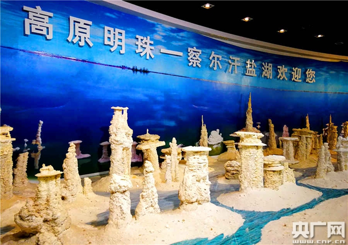 察爾汗鹽湖循環(huán)經(jīng)濟(jì)產(chǎn)業(yè)園展示的鹽結(jié)晶體(央廣網(wǎng)記者 張雷 攝)