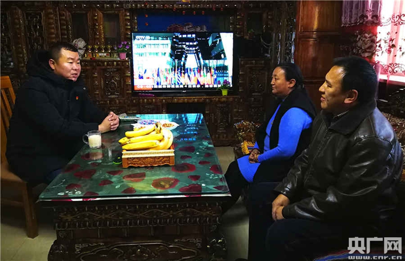 長(zhǎng)江源村“第一書(shū)記”秦大云走訪村民紅星家(央廣網(wǎng)記者 張雷 攝)