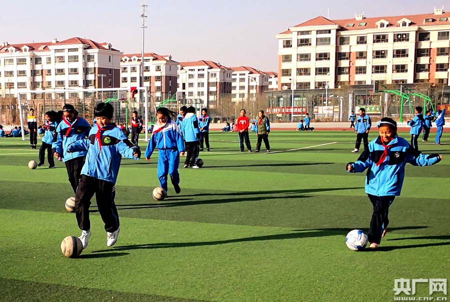 海東市高鐵新區(qū)學(xué)校的學(xué)生正在上體育課(央廣網(wǎng)記者葛修遠(yuǎn)攝)