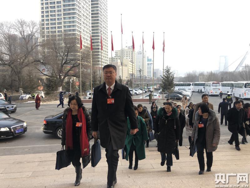 青海省政協(xié)委員進(jìn)入會場(央廣網(wǎng)記者 劉澤耕 攝)