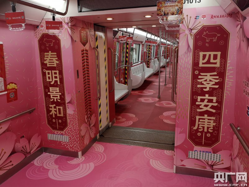 大連地鐵上線“2019金豬納福”主題車廂(央廣網(wǎng)發(fā) 宮文 攝)