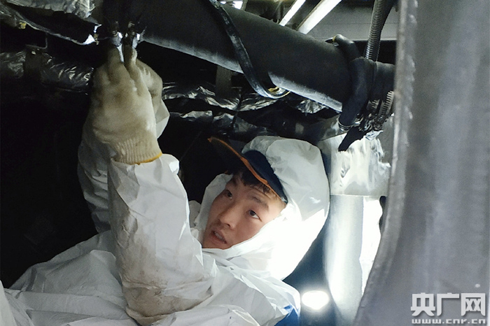 央廣網(wǎng)重慶1月30日消息(記者趙聰聰 通訊員施為 倪瑜浩)“別都圍上來,他不好出來!薄奥c!別磕著!”“來!扶一把!”“別動!稍等!我腿麻了得緩緩......”1月30日,成都動車段檢修庫動車組內(nèi),二級修4班王占軍穿著污跡不堪的白色的防護服滿頭大汗從設(shè)備艙鉆出來。