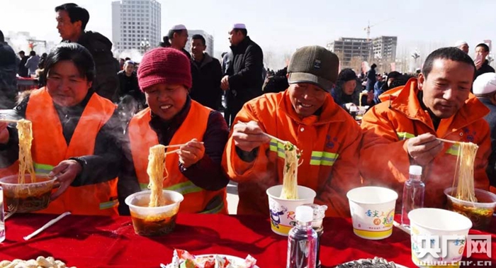 央廣網(wǎng)化隆2月2日消息(記者張雷 通訊員李玉峰)在這中華民族傳統(tǒng)節(jié)日春節(jié)即將來臨之際,青海省海東市化隆回族自治縣1日舉行“青海年·醉海東”拉面之鄉(xiāng)度新春之“千人共享幸福面”活動。