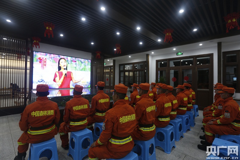 備勤人員,在休息點觀看春節(jié)聯(lián)歡晚會。(央廣網(wǎng)發(fā) 通訊員童鵬程攝)