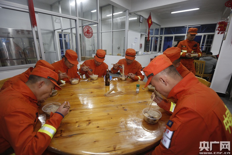 凌晨2點半,鼓山風景區(qū)管委會為執(zhí)勤人員準備了熱騰騰的宵夜。(央廣網(wǎng)發(fā) 通訊員童鵬程攝)