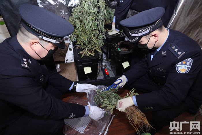 民警鏟除室內種植的大麻(央廣網發(fā) 成都海關供圖)