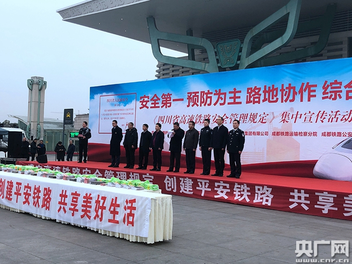 央廣網(wǎng)成都2月28日消息(記者劉濤)2月28日,中國鐵路成都局集團有限公司聯(lián)合四川省鐵路護路聯(lián)防工作領導小組、四川省公安廳、成都鐵路運輸檢察分院和成都鐵路公安局在成都東站西廣場開展《四川省高速鐵路安全管理規(guī)定》集中宣傳活動。