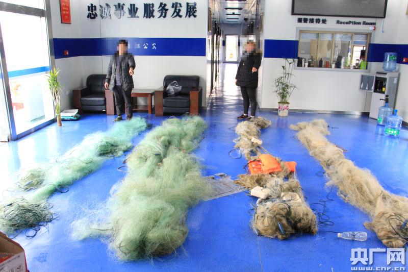 現(xiàn)場查處非法捕撈工具(央廣網(wǎng)發(fā) 通訊員余湖 攝)