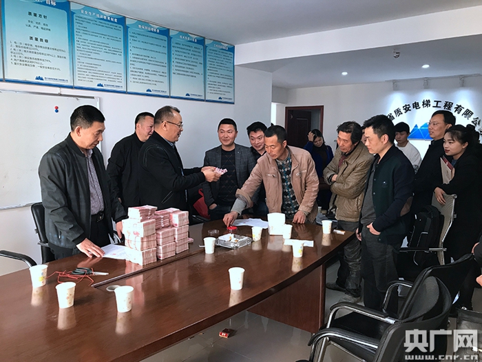 巴中維權(quán)人員把討回工資發(fā)給民工(央廣網(wǎng)發(fā) 巴中總工會供圖)
