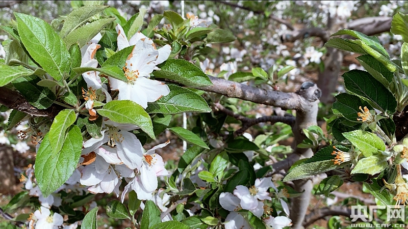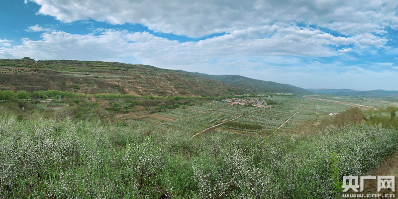 四月,甘肅省隴南市禮縣分布在西漢水沿岸的60萬畝蘋果花開(央廣見習(xí)記者 王琪瑤 攝)