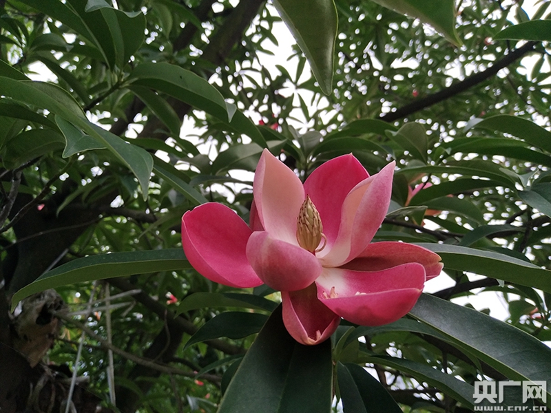 四川洪雅縣首次發(fā)現(xiàn)國家級瀕危珍稀植物“紅花木蓮”(央廣網(wǎng)發(fā) 林國強(qiáng) 攝)