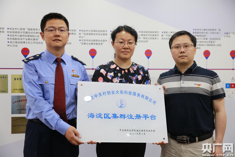 北京海淀發(fā)出全市首份“集群注冊”營業(yè)執(zhí)照。劉天思攝