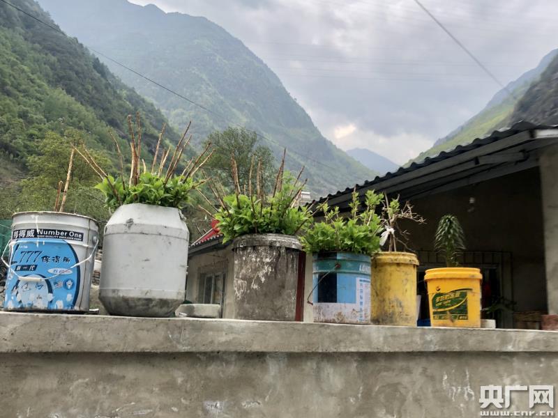 瓦斯溝的山谷里最不缺的就是輪回的花花草草,可農(nóng)家人依舊喜歡親手栽種幾枝小草小花,他們在廢棄的半截桶里裝滿泥土,或撒種菜種、或插上莖子,擺在墻邊,排在墻頭上,任憑風(fēng)吹日曬,不起眼的那株綠意和花朵總是喜在農(nóng)家人的心頭上。
