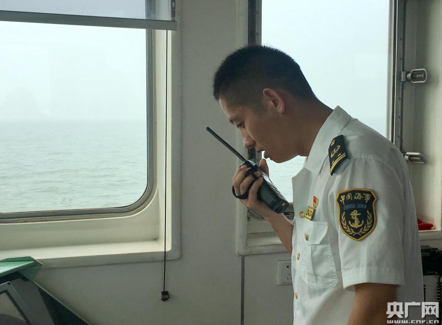 演習現(xiàn)場,“神華505”在“神華拖8”的護航下返航。(央廣網(wǎng)見習記者 張曉琳 攝)