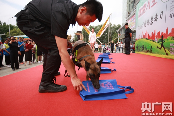 活動期間向新成立的“城陽區(qū)禁毒陽光志愿服務驛站”和禁毒志愿者代表授牌和授旗,F(xiàn)場60名禁毒志愿者代表進行了宣誓,并莊嚴承諾。城陽公安分局兩條緝毒犬進行了現(xiàn)場模擬搜毒表演,現(xiàn)場觀眾上臺隨機擺放6個樣品道具(其中一個裝有冰毒),再由緝毒犬上臺嗅聞搜索,贏得現(xiàn)場陣陣喝彩與掌聲,F(xiàn)場的禁毒知識有獎問答、毒品及吸販毒工具展示和由禁毒志愿者、禁毒社工、現(xiàn)場群眾在“健康人生、綠色無毒”倡議百米橫幅上簽名,營造了濃厚的現(xiàn)場宣傳氛圍,收到了良好的社會效果。