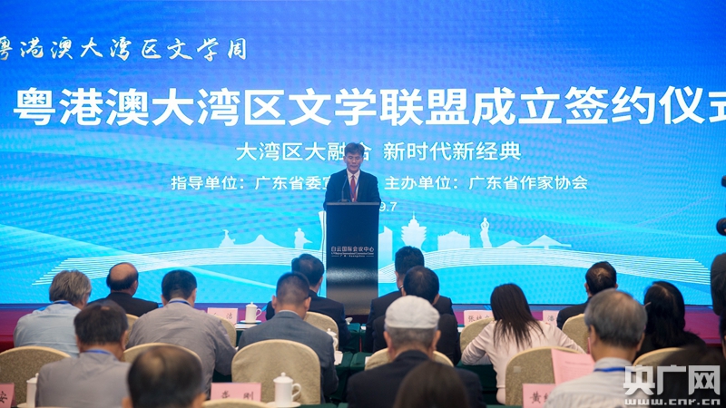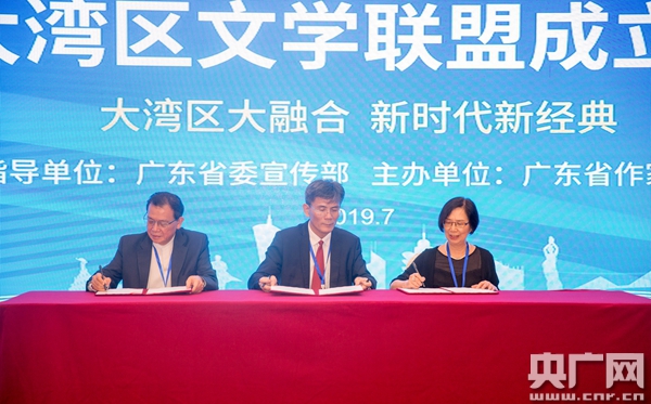 粵港澳三地代表簽下粵港澳大灣區(qū)文學聯(lián)盟。(央廣網發(fā) 主辦方供圖)