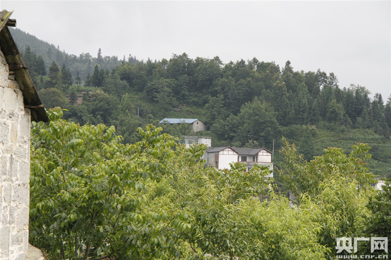 村干部帶記者開車往村委會后山走,半個小時后,到了山頂一戶村民家的曬谷坪停下,便再無路可通。村干部指著平行遠處散亂的幾棟房子,告訴記者,那就是包包組。從記者的角度,包包組似乎就在一兩百米開外,怎么會不通公路呢?