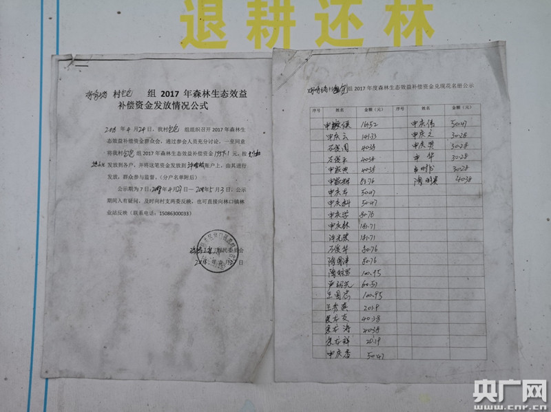 村民領(lǐng)取森林生態(tài)效益補償資金的賬單(蔣琦 攝)