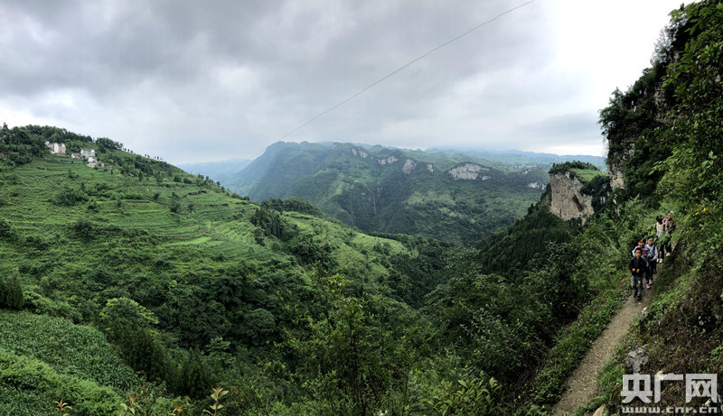 雞鳴三省村地處烏蒙山腹地,是典型的喀斯特地貌,受河流縱切,四處是絕壁懸崖!鞍M”僅42戶人家,被深谷包圍,隔著渭河和云南相望。在這里,修路、修房的材料仍需人背馬馱才能運上山,難度和成本是外界的數(shù)倍。懸崖上鑿出的這條山路不足半米,兩人相遇需側(cè)身而行,這條路是進出村部唯一的通道,熟悉山路的村民走出來,最少需要四十分鐘。因為才下過雨,山路泥濘濕滑,爬到包包組第一戶人家,記者花了一個多小時。