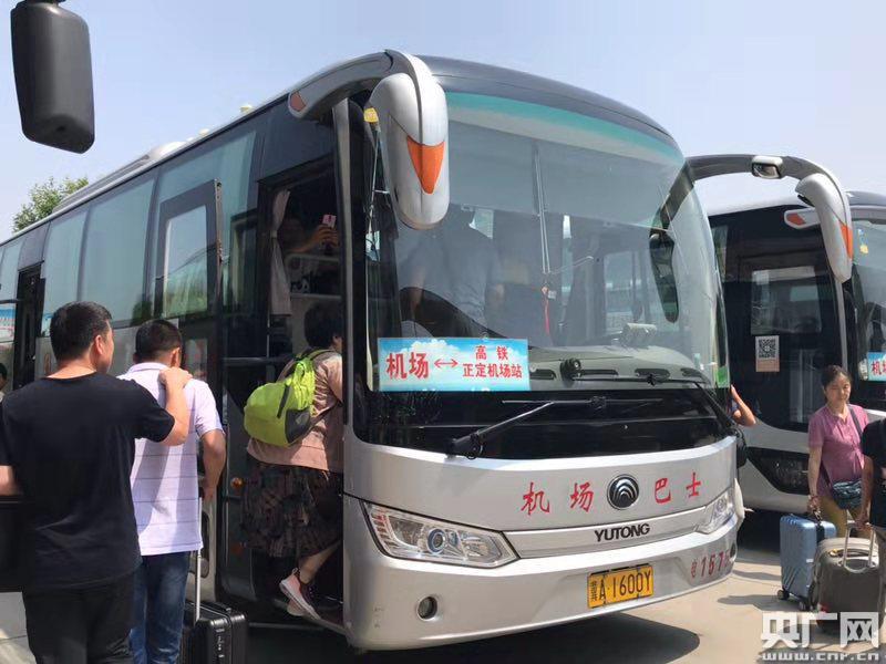 乘坐免費(fèi)擺渡車(chē)可從高鐵正定機(jī)場(chǎng)站直達(dá)機(jī)場(chǎng),單程運(yùn)行時(shí)間約5分鐘(央廣網(wǎng)見(jiàn)習(xí)記者 閆金楓 攝)