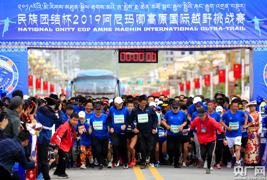 “民族團結杯”2019阿尼瑪卿高原國際越野挑戰(zhàn)賽鳴槍起跑(央廣網(wǎng)記者 張雷 攝)