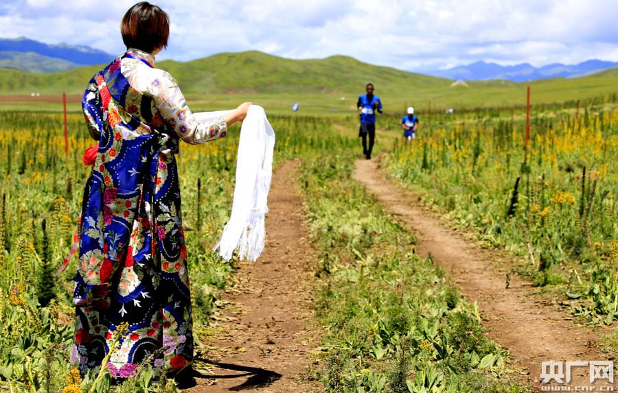 來自香港的選手胡女士第一次在內地參加高原的跑步比賽,完成比賽后她表示:高原跑步雖然挑戰(zhàn)大,但青,斍叩乃{天綠草和藏族志愿者的熱情支持著她跑完全程,瑪沁真是一個圣潔美麗的地方。