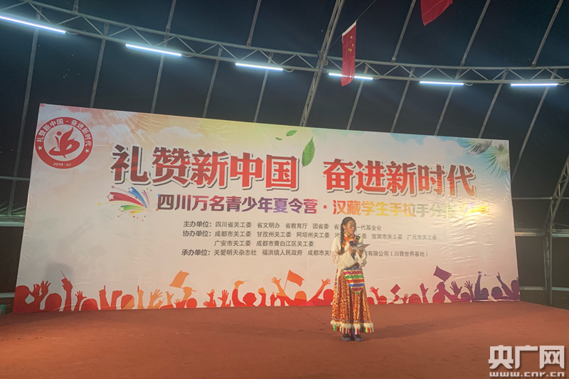 央廣網(wǎng)成都7月22日消息(記者韓民權(quán) 見(jiàn)習(xí)記者楊煜)22日,“禮贊新中國(guó),奮進(jìn)新時(shí)代”四川省萬(wàn)名青少年夏令營(yíng)“漢藏學(xué)生手拉手”特色分營(yíng)在成都開營(yíng)。來(lái)自甘孜、阿壩的200名藏族學(xué)生和來(lái)自瀘州、宜賓、廣元等地的200名漢族學(xué)生參加了此次活動(dòng)。漢藏學(xué)生將在活動(dòng)中共同學(xué)習(xí),增進(jìn)友誼。
