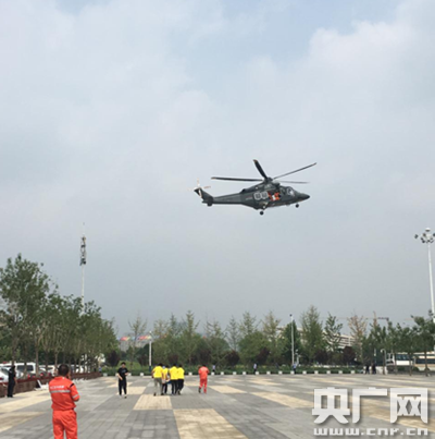 直升機災難中救援傷員演示。(央廣網(wǎng)見習記者 張曉琳 攝)