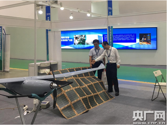 展商在向參會人員介紹太陽能隨行電源包。(央廣網(wǎng)見習記者 張曉琳 攝)