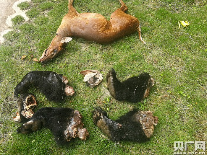 查獲的黑熊制品和赤麂死體(央廣網(wǎng)發(fā) 羅貴平 攝)