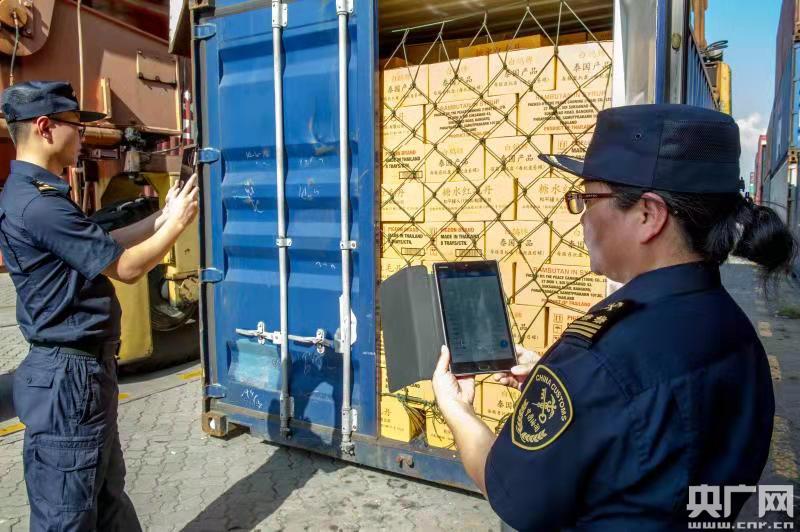 查驗人員檢查貨物外包裝完整情況(央廣網(wǎng)發(fā) 通訊員供圖)