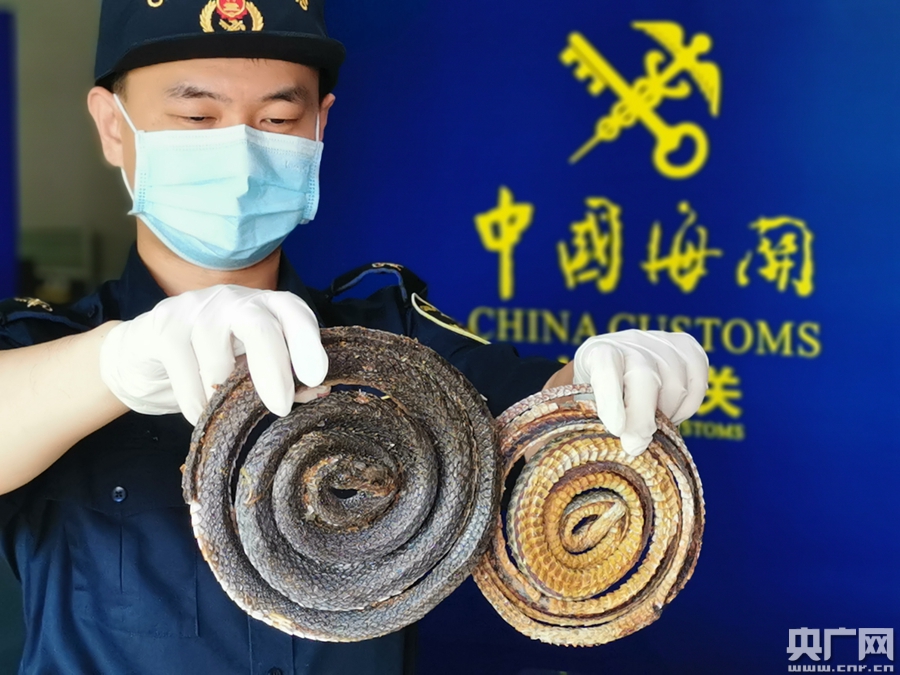 海關(guān)查獲瀕危蛇干違法入境(央廣網(wǎng)發(fā) 通訊員供圖)