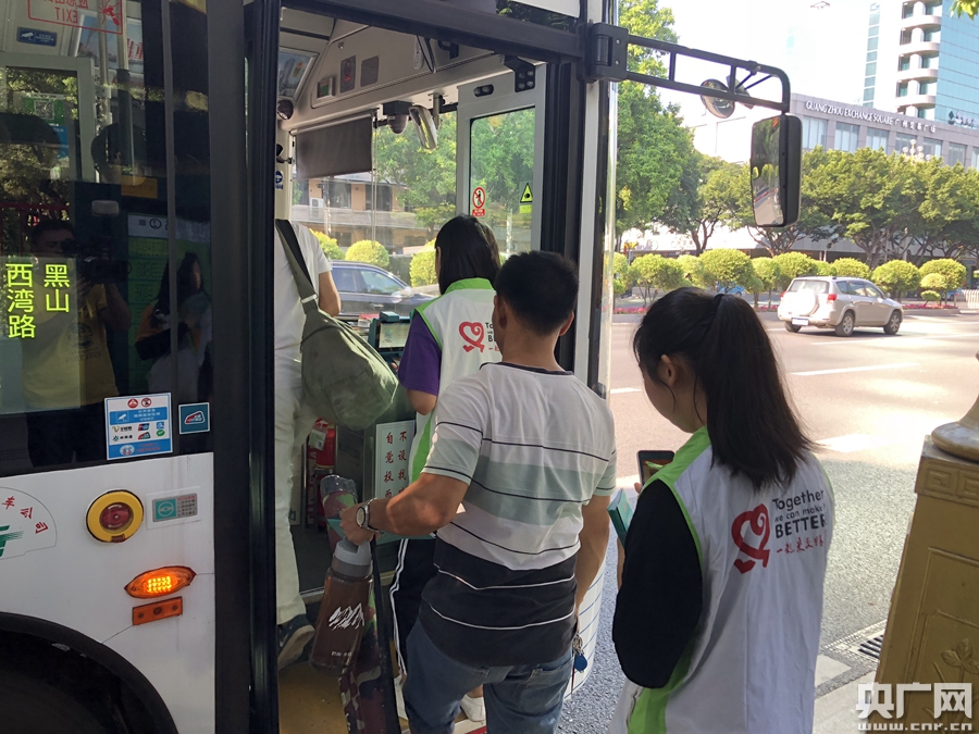 當天,全市40臺公益巴士啟動垃圾分類志愿宣傳活動。志愿者身著馬甲,手拿垃圾分類手冊向乘客們宣講垃圾分類相關知識;顒又鬓k方在相關線路上共安排20名宣傳志愿者向車廂或公交站臺的乘客車上宣講垃圾分類知識點。