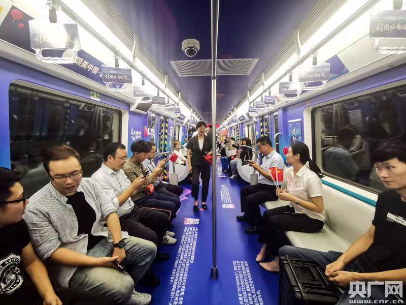 車廂里,很多乘客拿起手機,留下精彩瞬間,市民李女士表示,“這次主題列車很有沖擊力,一下就感受到了喜慶的節(jié)日氣氛!背丝蛥温珊獗硎,主題列車既體現(xiàn)了慶祝新中國成立70周年的崇敬之情,又展示了大連的發(fā)展成就,很好地將祖國與大連融合在一起,完美體現(xiàn)了“頌美中國 追夢大連”的主題。