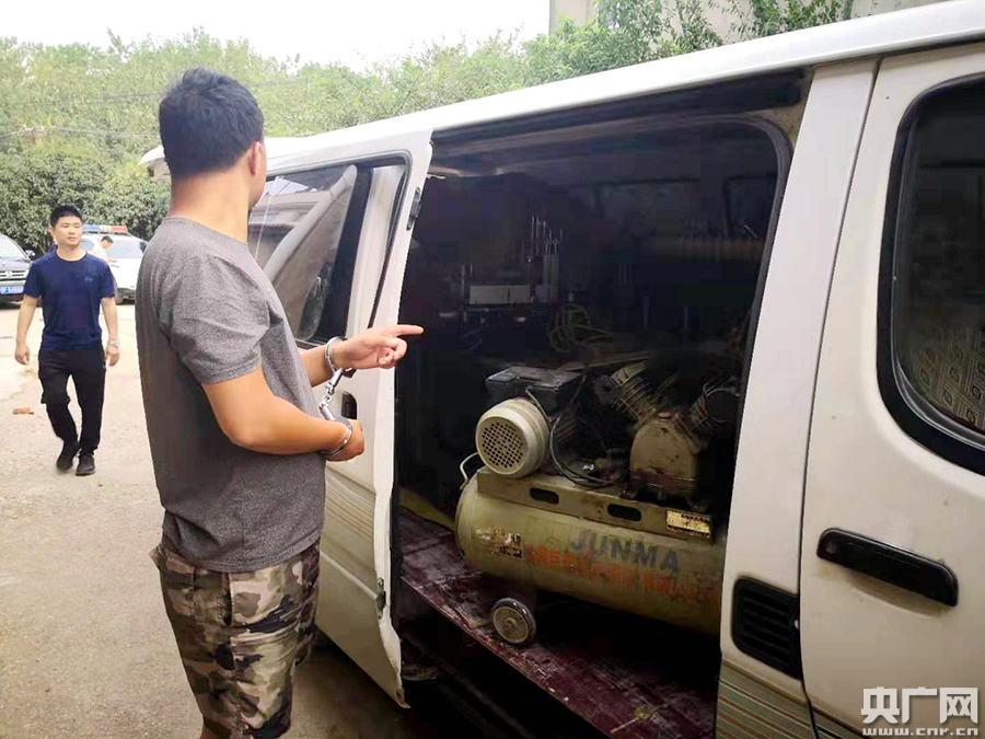 民警抓獲錢某并起獲制售假酒設(shè)備(央廣網(wǎng)發(fā) ?悼h公安局供圖)