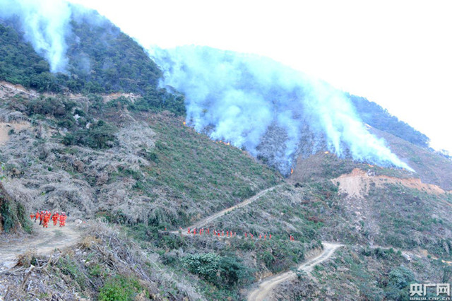 廣東省應(yīng)急管理廳調(diào)動(dòng)專業(yè)森林消防隊(duì)火速增援火場(chǎng)(央廣網(wǎng)發(fā) 廣東省應(yīng)急管理廳供圖)