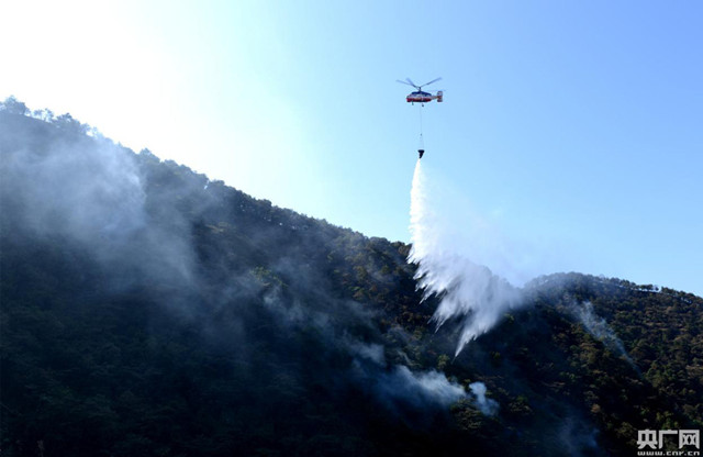 廣東省應(yīng)急管理廳調(diào)動(dòng)森林消防直升機(jī)進(jìn)行吊桶滅火(央廣網(wǎng)發(fā) 廣東省應(yīng)急管理廳供圖)
