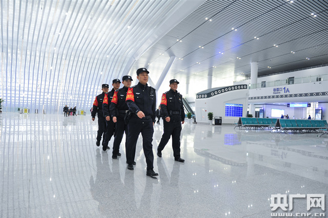 民警在候車室內(nèi)巡邏和執(zhí)勤工作(央廣網(wǎng)發(fā) 襄陽(yáng)鐵路公安處供圖)