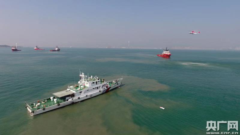 廣東海事局正在進行水上防污染應(yīng)急演練。(央廣網(wǎng)發(fā) 海事局供圖)
