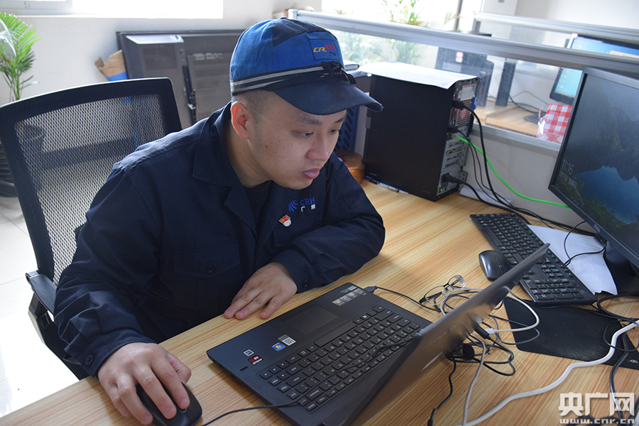 徐海洋正在編輯旅客服務(wù)信息系統(tǒng)數(shù)據(jù)(央廣網(wǎng)發(fā) 萬(wàn)新 攝)