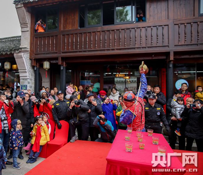央廣網(wǎng)寧波1月19日消息(記者杜金明 通訊員卓璇 楊芝)年糕搡起,年味便近了。1月19日,一年一度的慈城年糕節(jié)在民權(quán)路上熱鬧開場(chǎng)。暖陽下,民權(quán)路風(fēng)情長街人頭攢動(dòng),游客的歡談聲、古戲臺(tái)上的唱戲聲、沿街商鋪古早的吆喝聲不絕于耳,空氣中彌漫著熟悉的年糕香,濃濃的“年味”頓時(shí)撲面而來。這個(gè)冬天,慈城用誠意十足的年糕盛宴和五花八門的民俗活動(dòng)慰藉千萬游客的滿滿鄉(xiāng)愁。