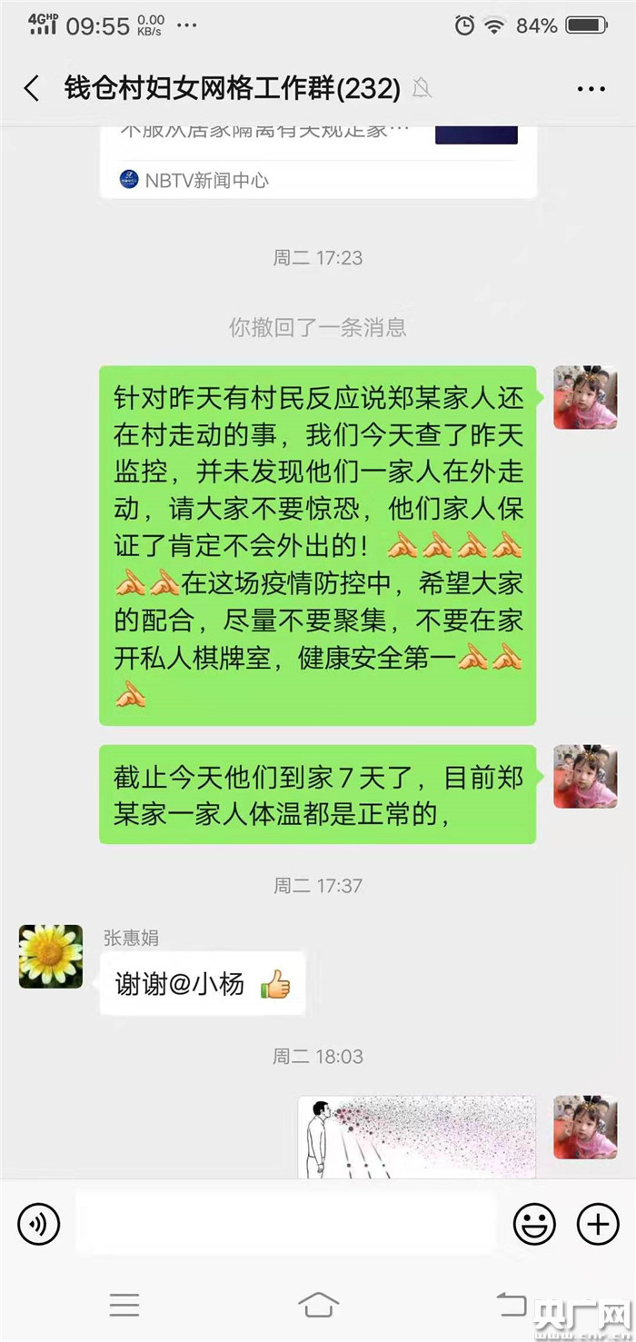 楊密影在微信群里辟謠(央廣網(wǎng)發(fā) 象山縣委宣傳部供圖)