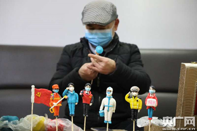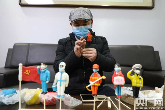 非遺傳承人創(chuàng)作“抗疫面人”(央廣網(wǎng)發(fā) 通訊員陳毅 攝)