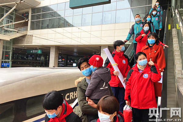 醫(yī)療隊搭乘高鐵前往武漢(央廣網(wǎng)記者 堯遙 攝)